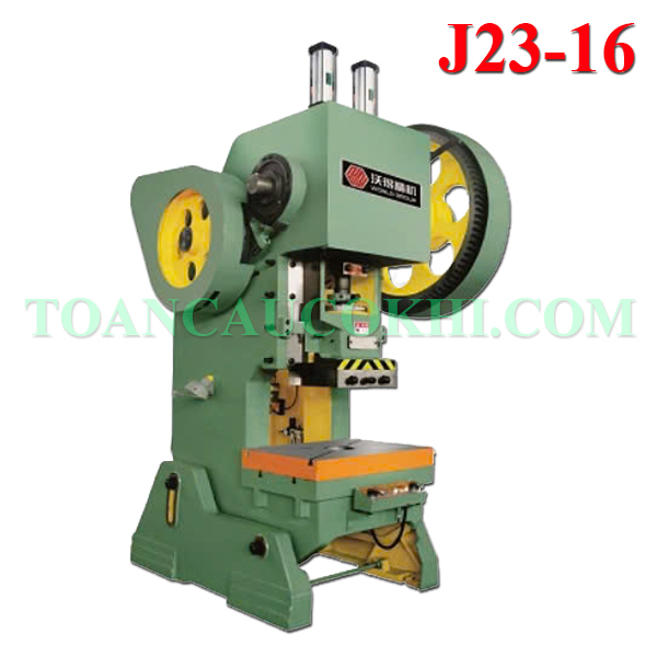 Máy dập bánh đà J23-16 có khả năng dập lỗ chính xác do thiết kế hành trình ép ngắn chỉ 2mm. Lực ép mạnh mẽ 16 tấn, hành trình trượt của đầu dập 55mm. Hoạt động với tốc độ 125V/p, chiều cao khuôn tối đa 220mm. Chiều cao điều chỉnh khuôn tối đa 45mm. Công suất motor mạnh mẽ 1.5Kw.