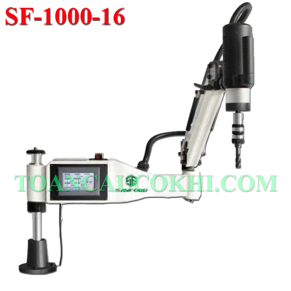 Máy taro cần điện SF-1000-16 là dòng máy taro kim loại dạng cánh tay cần dài. Sản xuất và nhập khẩu từ Trung Quốc, thương hiệu Sanford. Chuyên dùng để taro trên nhôm, sắt, inox, đồng. Với chiều dài cánh tay 1100mm, chiều cao cần có thể nâng lên hạ xuống 550mm. Phù hợp cho các xưởng, nhà máy gia công cơ khí tại Việt Nam.
