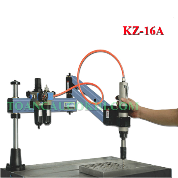 Máy taro cần khí nén KZ-16A sản xuất và nhập khẩu từ Trung Quốc. Khả năng làm việc hiệu quả cao, giá thành rẻ. Có thiết kế đặc biệt kiểu cánh tay, có thể vươn xa trên bán kính lớn nhất 1200mm. Chức năng taro trên kim loại từ M3-M16. Làm việc trên hầu hết các vật liệu kim loại.